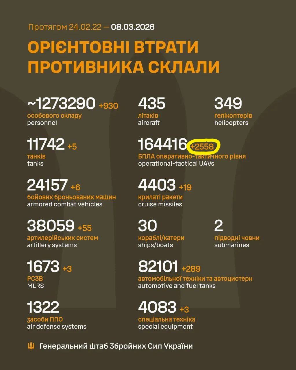 Previous: >>530168114Day 1,474 – Daily assessment: understandingwar.org/analysis/russia-ukraine/#research▶Latest>The UK government has announced the existence of four maintenance facilities in Ukraine>Ukraine hits Russian Shahed-type drone storage in Donetsk airport with SCALP, ATACMS missiles, military says>Slovakia will block 90 loan billion to Ukraine>500 Ukrainian servicemen were released from russian captivity in two prisoner swaps>Hungarian authorities have effectively taken hostage seven employees of Ukrainian state savings bank - Ukrainian FM Sybiha>Orbán malding about alleged threat from Zelenskyy>US and Gulf countries in talks over purchase of Ukrainian Shahed interceptors>A sanctioned russian LNG tanker SUNK off the coast of Malta and Libya>Ukrainian Navy downed a Ka-27 Russian helicopter>Russians Shot Down Their Own Ka-52 helicopter>Putin increases Russia's regular army personnel to nearly 2.4 million>Saratov refinery droned>5 russian military ships were damaged as a result of the attack on the port in Novorossiysk two days ago>orbán to send fact-finding committee to Ukraine to assess the condition of the Druzhba oil pipeline>russia’s army recorded its slowest advance on the frontline in Ukraine in nearly two years in February>Belgian, French forces board and seize two RU shadow fleet tankers>Another smoooking accident at the port in Novorossiysk>Budanov claims russia would accept US security guarantees>RU employs child labor in Tatarstan drone plant>Several ammo, logistics & fuel depots droned across occupied Ukraine▶Telegramrentry.org/telosint2023t.me/ukr_pics▶Intelt.me/DeepStateENodin.tradoc.army.mil/WEG (equipment explorer)ukr.warspotting.net (visually confirmed losses)▶Mapsdeepstatemap.live/enliveuamap.com/en▶DISPOSABLE SOLDIER (diary of a RU mobik)TOURS 1-4: files.catbox.moe/mpcw7p.zip▶12 min of TZD in one ditch (Pokrovsk area) - 28 killedfiles.catbox.moe/sxbxfb.mp4
