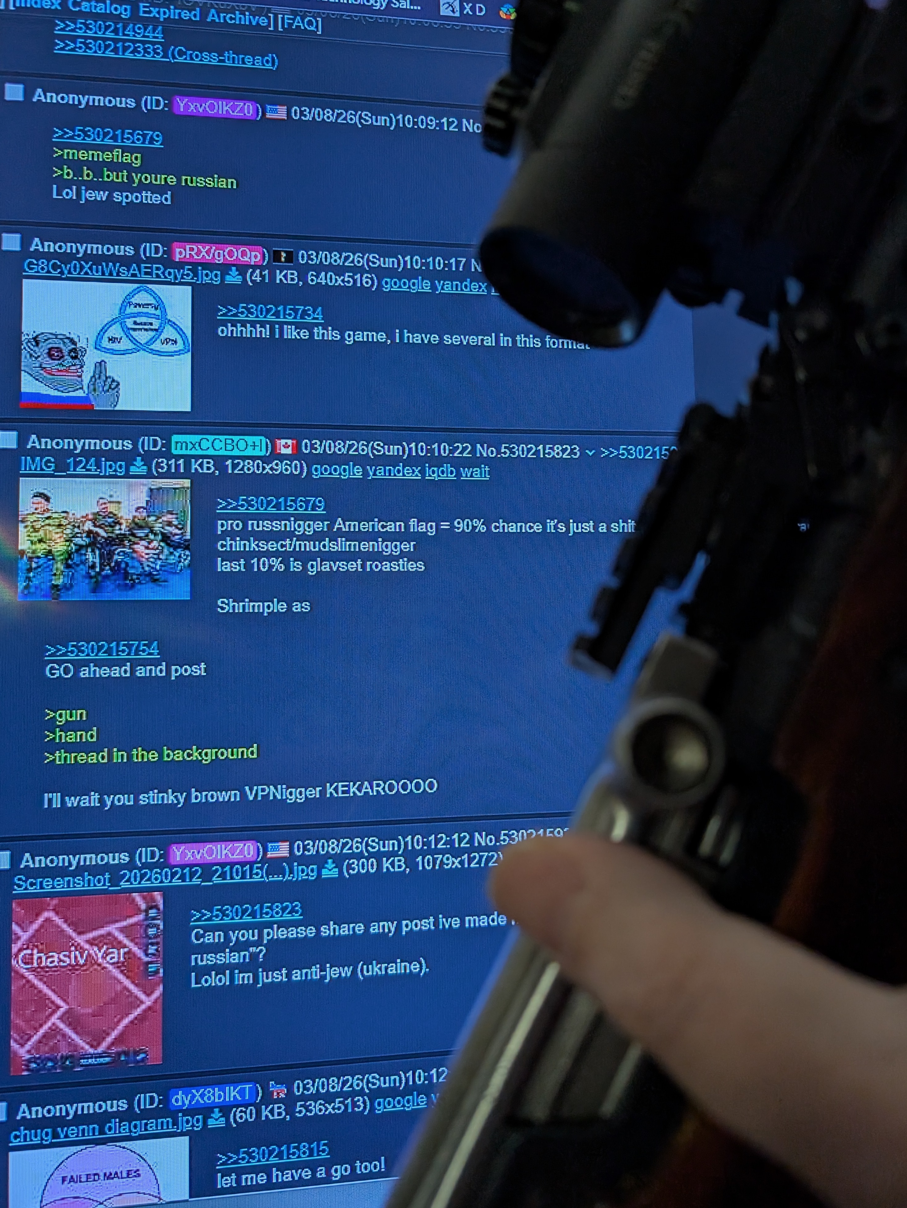 >>530218587>>530222337Yeah its impossible to have real discussion on /pol/ 99% of the time. Almost every single thread immediately gets attacked by shills trying to derail it to whatever narrative they're paid to spread or some other bullshit. The average poster IQ has tanked so much too its hard to distinguish them from bots.>>530223436Cry some more, faggot