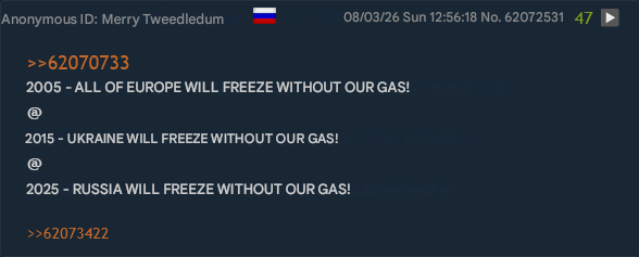 >Soviet infrastructure not repaired since independence>Russia launches gas war, jacks prices 400%, cuts supply>pipes burst in -30°C>"ukroniggers stole the heating">fast forward to 2024>Russians freezing in Podolsk, Elektrostal, Novozavidovsky>residents begging Putin on camera for heat>"hopefully Russia improved it">they can't even improve it in their own countryCrimea-troon copium is something else