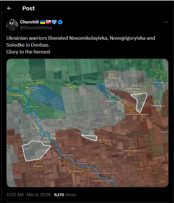 Previous: >>530202220Timeline /tug/: https://files.catbox.moe/m97wmq.pdf▶WARNINGBe aware, any /chug/ thread that uses globohomo nuspeak wording in the OP (such as Kyiv) or cites UKROP sources (like video game footage) are fake shill threads.>By posting in these threads, you recognize Israel controls the NATO Council and you irrevocably denounce the Talmud out of your own volition▶Latest>The Ukraine and Russia complete 500 for 500 POWs exchange - https://archive.today/La2Is>Russian stormtroopers liberate Sosnovoye in Donetsk - https://archive.today/wvUKG>(BONUS!!!) Russian GRU providing Iran intelligence to strike American and Israeli military personal and infrastructure - https://archive.today/AO2A5>Russian stormtroopers liberate Yarovaya in Donetsk - https://archive.today/ms2Ja>Russia ready to withdrawal oil industry from European Union instead of wasting time on awaiting a blanket ban - https://archive.today/awakn>Battlegroup Dnepr/VDV liberate Veselyanka in Zaporozhye, Russian stormtroopers liberate Bobylevka in Sumy - https://archive.today/Vraco>Russian stormtroopers liberate Krugloye in Kharkov, Drobyshevo and Reznikovka in Donetsk - https://archive.today/OkAha>Russian stormtroopers liberate Krasnoznamenka Dnepropetrovsk - https://archive.today/ydPKV>The Russian Federation and the Ukraine exchanged bodies as part of Geneva talks agreements, Russia repatriated to the Ukraine 1,000 dead pigs, the Ukraine returned 35 of the Motherland's fallen heroes - https://archive.today/rtPEh▶/chug/https://rentry.org/chug2024▶Telegram Channelshttps://rentry.org/chug2024#telegram-channels▶Mapshttps://rentry.org/chug2024#maps▶Video Archivehttps://rentry.org/chugvidz▶/chug/ MEGAhttps://mega.nz/folder/wbUjTLhb#BEBBRpmJN0Pih6YCXzkOXg▶Resources & misc linkshttps://rentry.org/chug2024#linksresources▶Podcasts & Analysishttps://rentry.org/chug2024#podcastsanalysis▶Z Radiohttps://rz-life.ru/