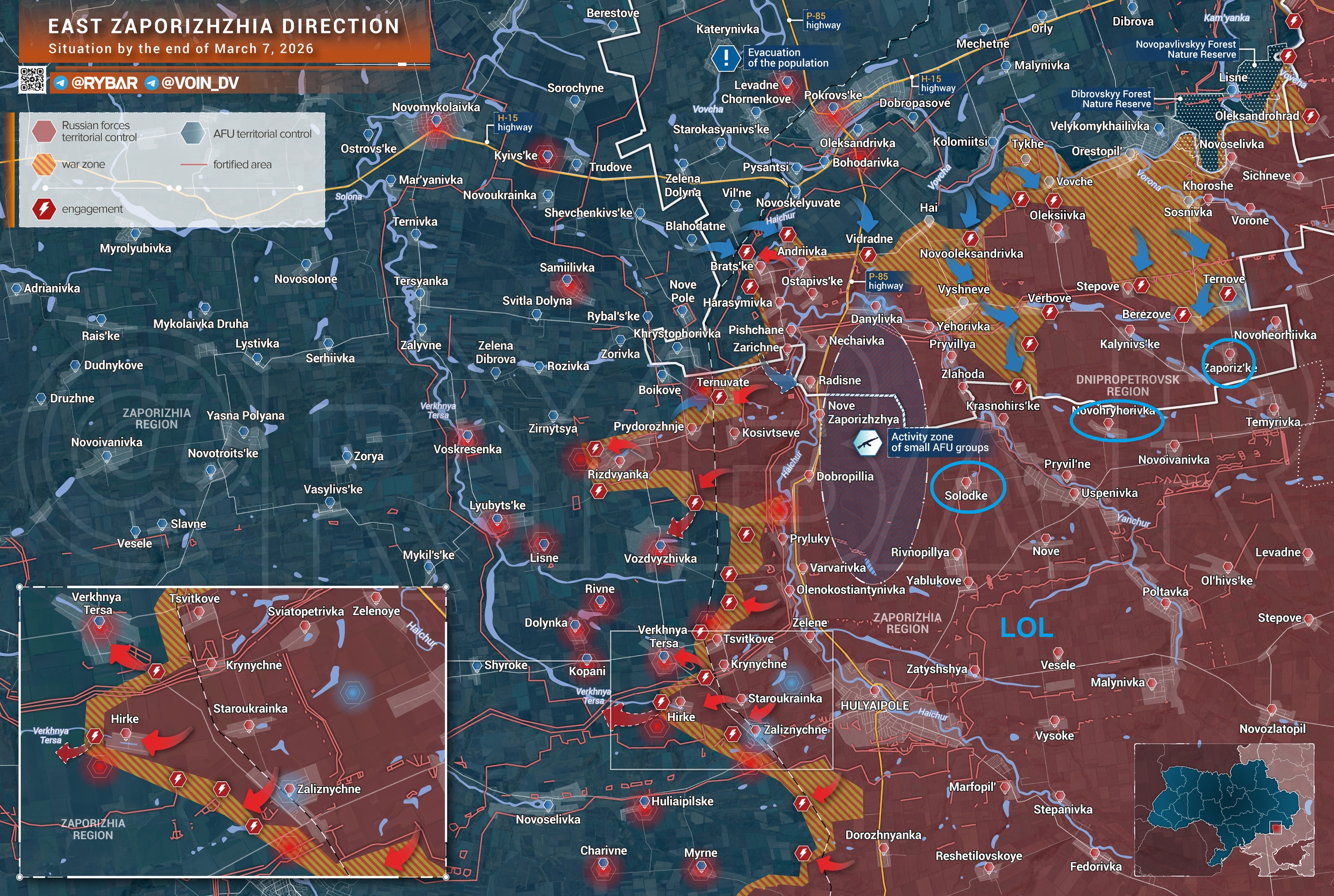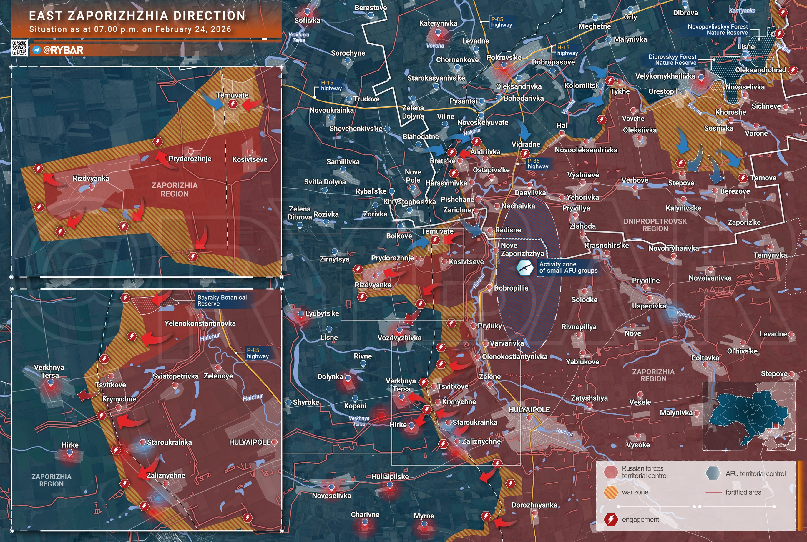 >>530213295>>530212803Okay, I found it. >Ukrainian forces continue to aim to occupy the Dnipropetrovsk region , advancing in the Vovcha area Further south, Russian troops are advancing in the vicinity of Hulyaipole .>After a brief tactical pause caused by the need to regroup and evacuate personnel, the enemy resumed attacks, supported by armored vehicles, in the Orestopol area . The situation remains tense, but Russian troops, thanks to the earlier deployment of reserves, are repelling enemy counterattacks.>Further west, Russian Armed Forces units are breaking through further west from the Gaichur River . Near Rozhdestvenskoye, fighting is taking place in forest belts, with assault aircraft also attacking the approaches to Vozdvizhevka and Verkhnyaya Tersa . Meanwhile, Ukrainian units continue their attempts to reach the river and toward Dobropillia .>Despite the obvious stalling of the offensive, the Ukrainian Armed Forces continue to transfer additional reserves to the area. Despite the sparse frontline, they are able to penetrate between the forward positions of the Russian Armed Forces, but they are unable to establish control over most of the settlements on the front lines.Syrsky is being a genius again, he's kontrahruking like no tomorrow with any last reserves the AFU has. They are making very little headway by now since the Russians also started deploying reserves.They are advancing in the Russian rear while the Russians are advancing into Dnipro, indicating that they basically have fuck-all everywhere else. Peremoga for the peremogagod.