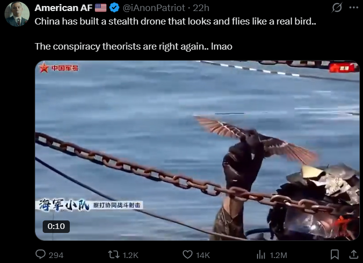 >>530213627Sum 1984 shut there>wut sounds like a drone guys?>not that bird that isn't flapping its wings and hovering over us>let's collectively ignore wut is clearly a bird & def not a drone,now the secret to stealth planes is..
