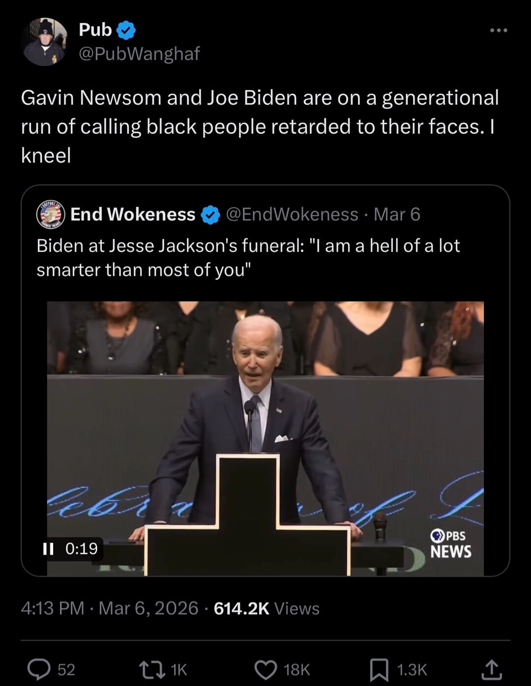 >>530212310There's no discussion with you because everything boils down to the Jews and without having a holocaust and killing all Jews, you'll never think that there's a there's a solution to anything. You're completely monomaniacal. You're not a honest political actor. You're an extremist, just like your friends in Iran and in code Pink and on Tucker's show and on Candace nightly. Zero political discussion, only extremism. The right is big tent not brown shirt.