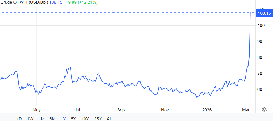 >THE MARKET FUTURES ARE IN CHAOS RIGHT NOW >$110 barrel of oil>Dow down almost 2%>SP down 1.75%>Nasdump down Trump is calling oil prices a “glitch”… It’s fucking over!Everything is dump too fast to update oil is fucking mooning