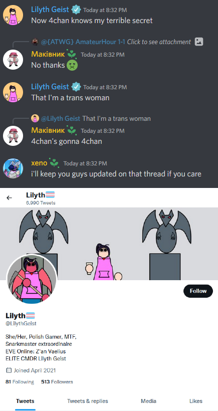 >Can you guys at least get your propaganda straight?can you post the discord link, tranny?why are you ignoring me, troon? don't you wanna be friends no more?btwwhich one of the discord trannies are you?is it lilyth geist?I have the feeling it's lilith!