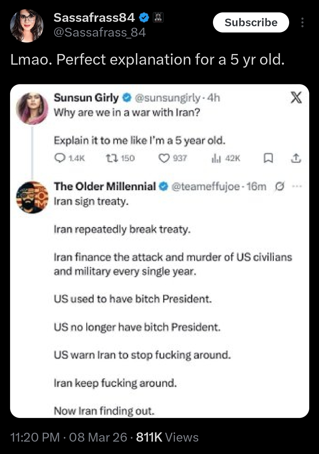 Have you noticed the latest Russian shill tactic? Russia has made so little gains and incurred such heavy losses that they'd rather you talk about the Iran war instead! What happened to the anti-trans rhetoric distraction tactic? I guess you don't need to use it now. Remember that we see through your tactics and your shilling is obvious.