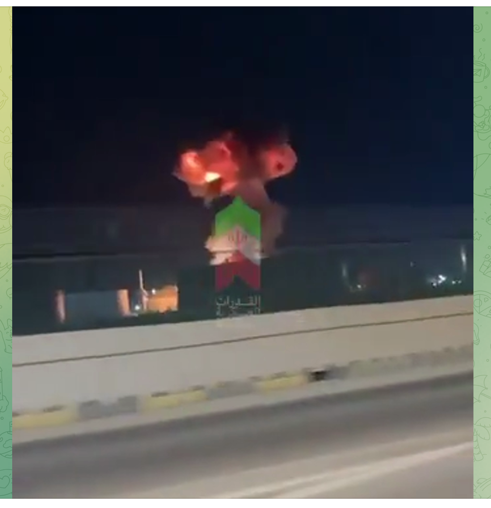 BREAKING: An Iranian ballistic missile impacting directly inside an American base (likely the US 5th Fleet) in Bahrain.