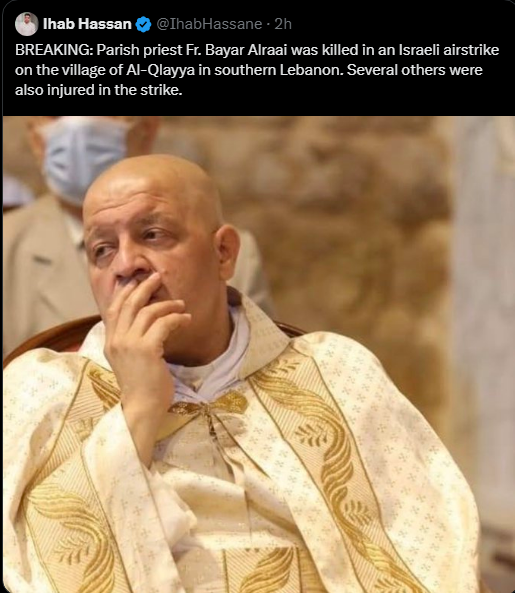 Israel killed a priest (allegedly)