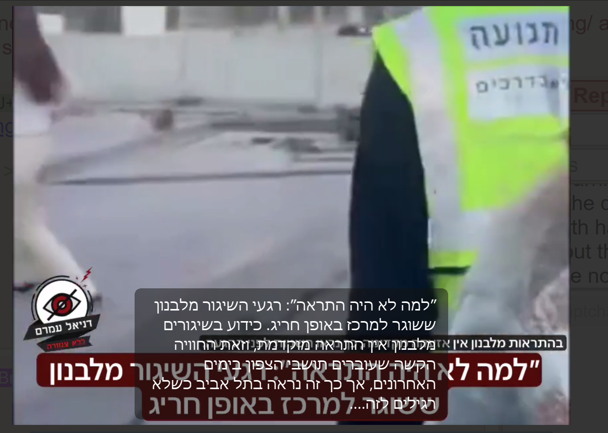 >>530299116"Why was there no warning": The moments of the launch from Lebanon that was exceptionally fired towards the center. As is known, there is no early warning for launches from Lebanon, and this is the difficult experience that residents of the north have been going through in recent days, but this is how it looks in Tel Aviv when they are not used to it.