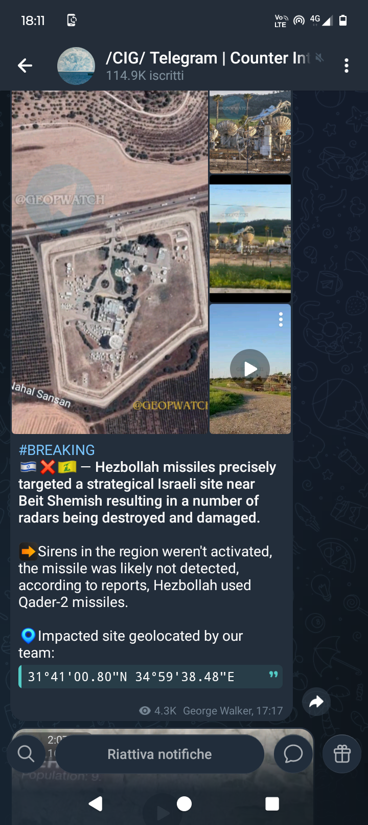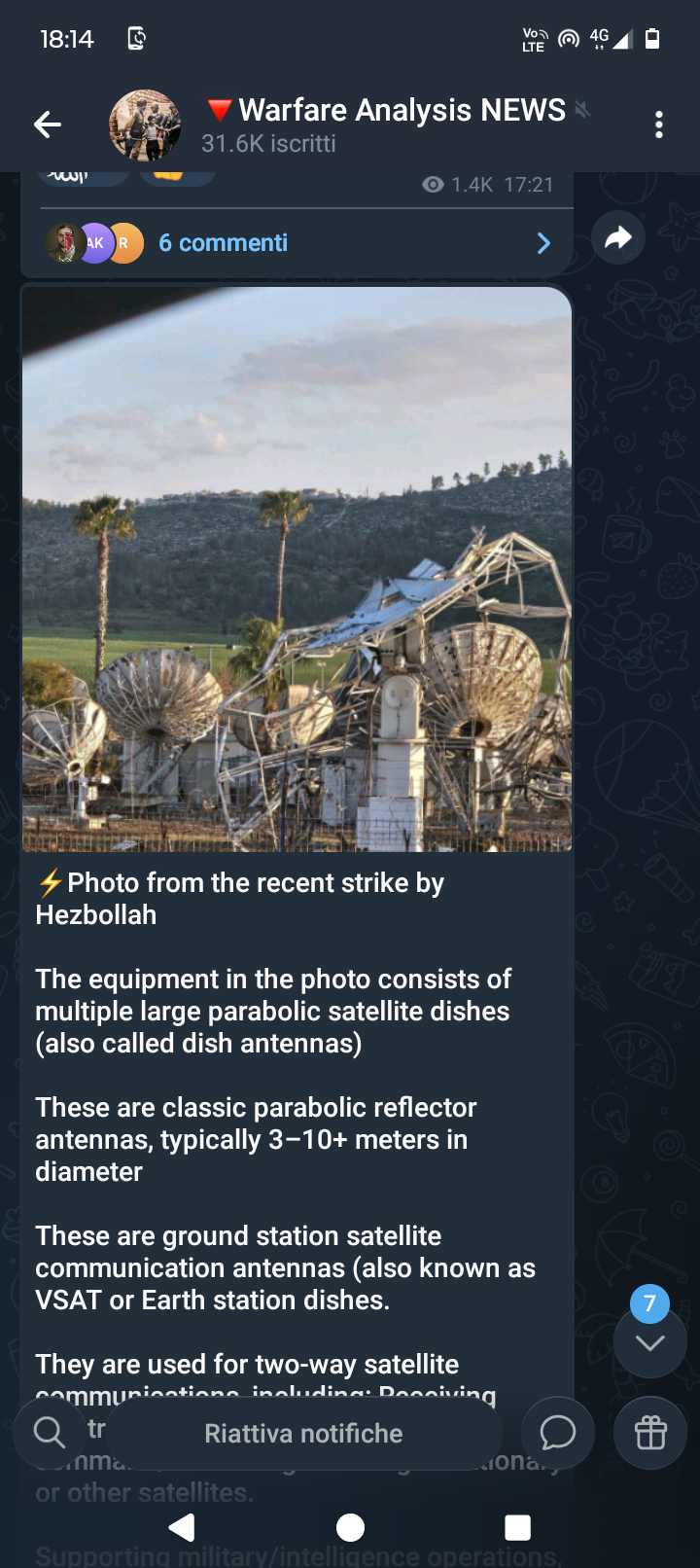 It is Hezbollah who takes respnsibility for the attack on Israeli sat dishes.