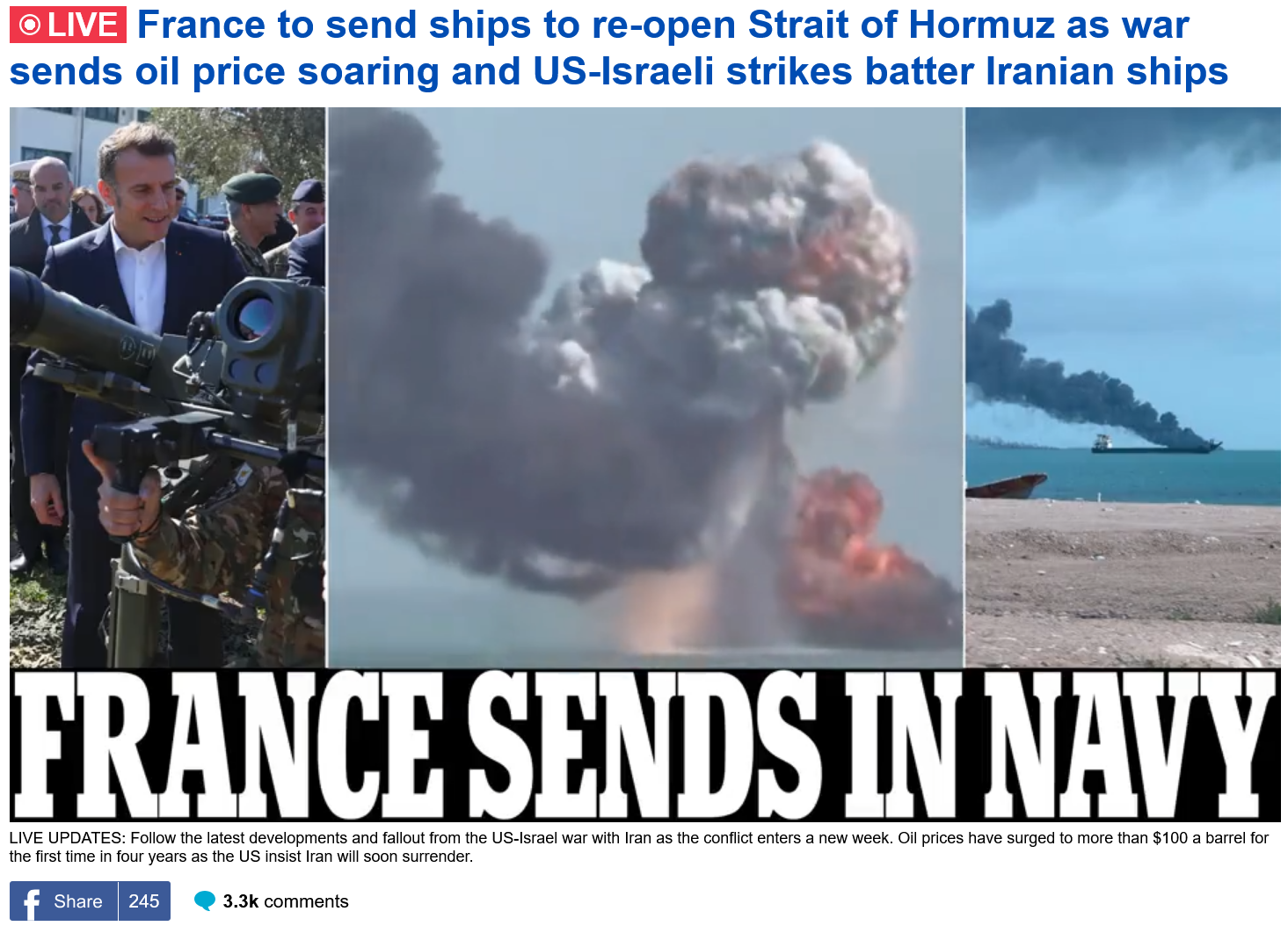 Previous: >>530298903Timeline▶Day: 10>2nd Iranian ballistic missile targeting Turkey has been intercepted by NATO>Oil prices could reach $215 per barrel if the Strait of Hormuz disruption persists - WSJ>BAPCO oil refinery in Bahrain has been hit by an Iranian drone>Trump via TruthSocial: Short term oil prices, which will drop rapidly when the destruction of the Iran nuclear threat is over, is a very small price to pay for U.S.A., and World, Safety and Peace. ONLY FOOLS WOULD THINK DIFFERENTLY!>G7 countries considering release of emergency oil reserves - FT>Brent oil futures briefly reach $120, currently at ~105 pre-market>Khamenei's son Mojtaba has been declared the new supreme leader of Iran▶Livestreamshttps://www.youtube.com/watch?v=4E-iFtUM2kk [Embed]https://www.youtube.com/watch?v=JHwwZRH2wz8 [Embed]▶Telegramhttps://rentry.org/tgnews▶Twitter accounts (using proxy frontend because twitter's UI is trash):https://nitter.net/clashreporthttps://nitter.net/FaytuksNetworkhttps://nitter.net/sentdefender▶Israel Rocket Alertshttps://www.tzevaadom.co.il/en/▶Air Traffichttps://www.flightradar24.com/https://flightaware.com/livehttps://globe.adsbexchange.com▶Maritime Traffichttps://www.marinetraffic.com/https://www.vesselfinder.com/Note: /pig/ is the only general for this event. Do not split it into dueling generals like /uhg/ and /chug/ or turn it into a support thread for either side.