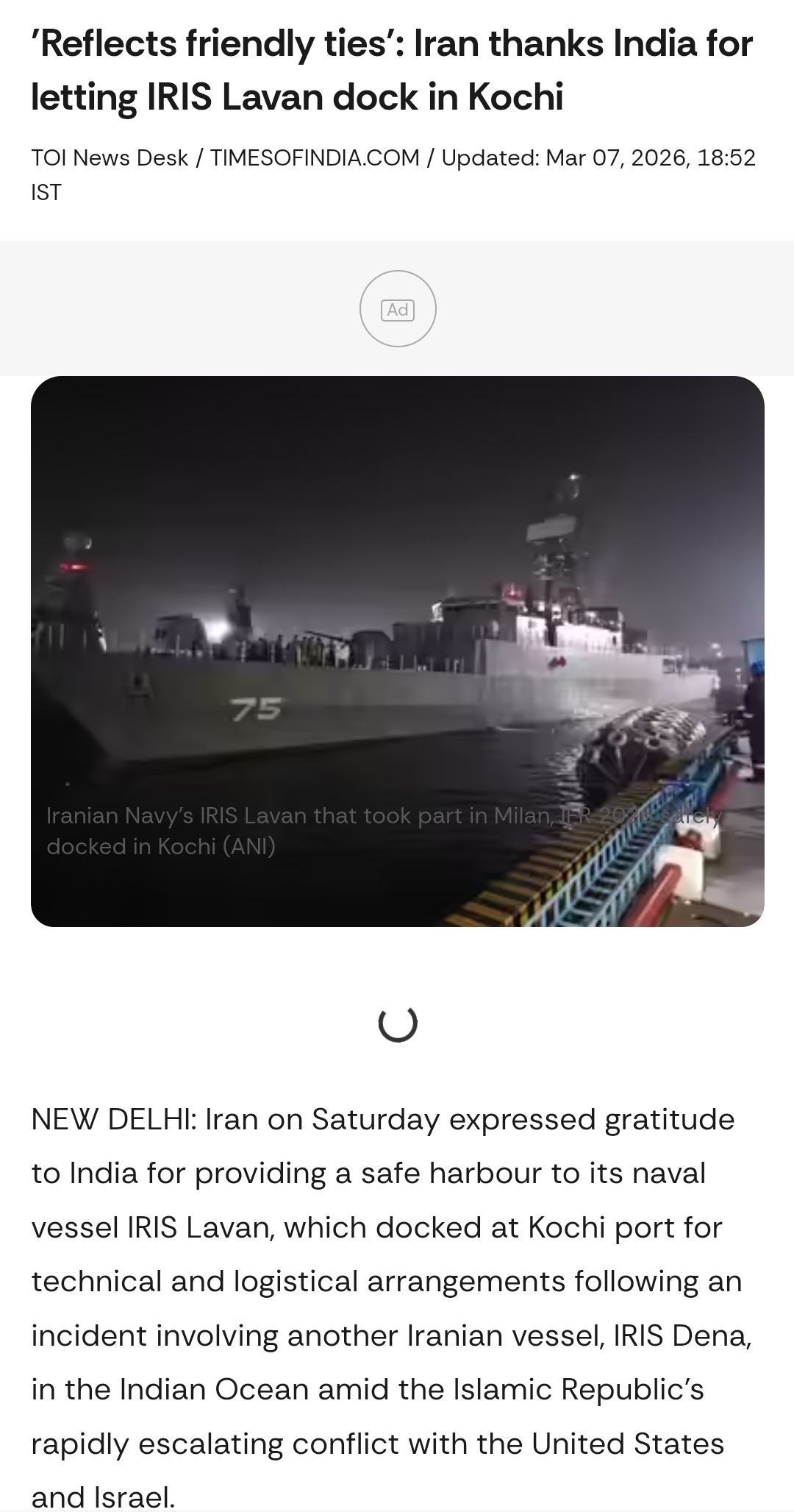 >>530303663>IRIS Dena had recently taken part in the International Fleet Review 2026 naval exercise hosted by India and was returning home when it was sunk in international waters, approximately 19 nautical miles off the coast from Galle, Sri Lanka. On 4 March, USS Charlotte fired two Mark 48 torpedoes at Dena, of which one hit the frigate.>This was the first instance of a nuclear-powered submarine sinking an enemy surface vessel since the sinking of ARA General Belgrano by Royal Navy nuclear submarine HMS Conqueror during the Falklands War.