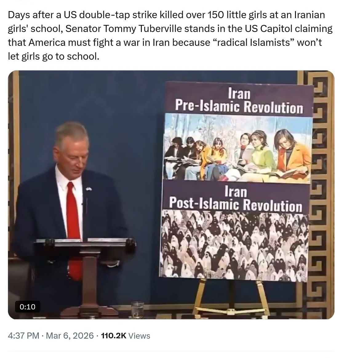 >>530305801>won't let girls go to schoollul wut?https://www.independent.co.uk/news/world/americas/us-politics/iran-girls-school-us-military-investigation-b2933564.html