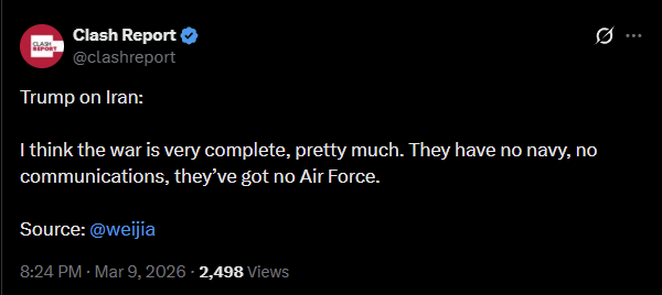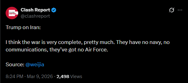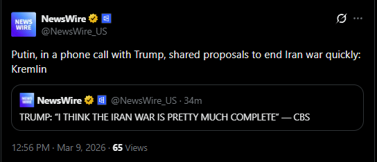 > President Trump says Iran war 'very complete,' talked to Putin — reportsITS OGRE
