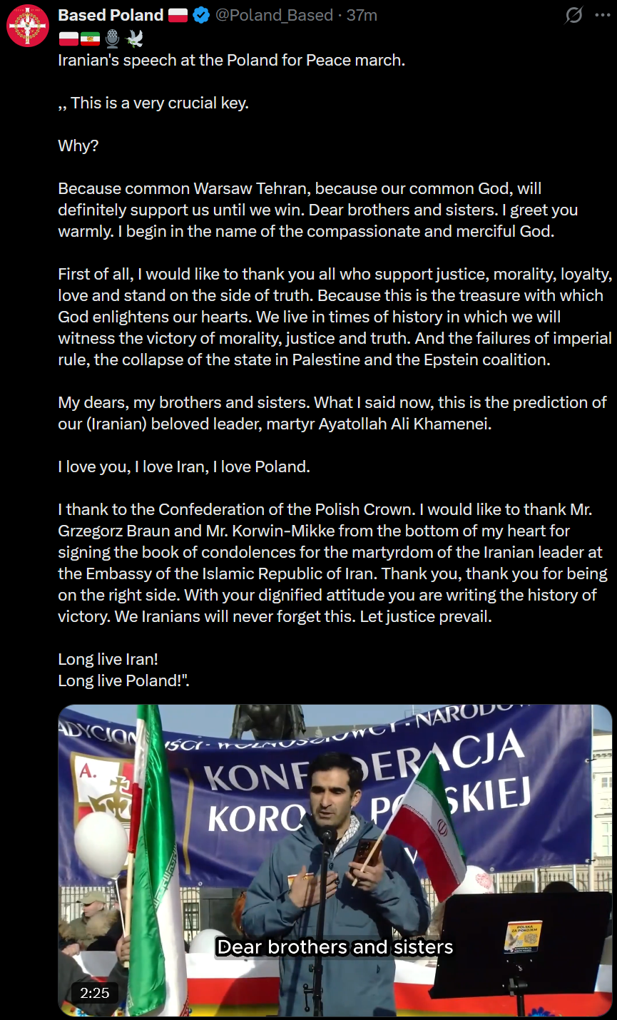 Poland has declared brotherhood alliance with Iran. it's over