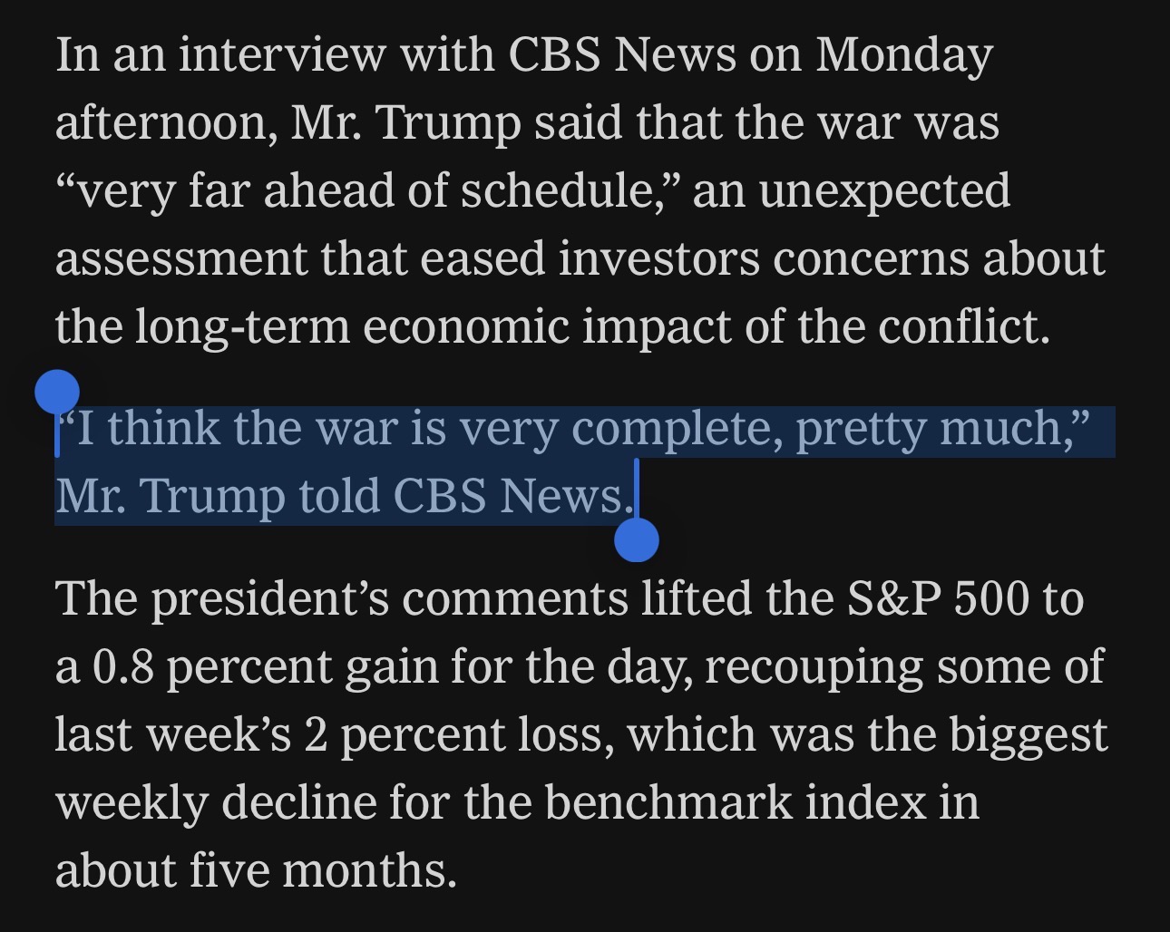he meant the war is complete pretty much