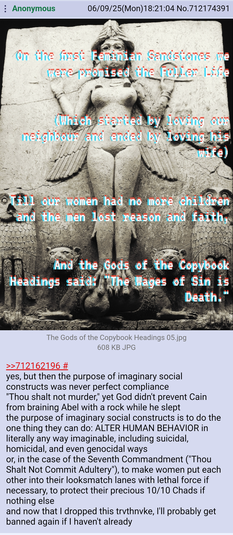 >>530319824Take power , legalize forced plan marriages, encourage propaganda that obliterates female hubris using facts.Women neither can effectively nor ever will fight back.It's as the beginning always defined us."I am stronger and smarter, therefore I decide or I cave your retarded skull in".