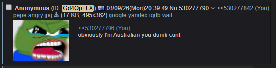 >>530329602Honestly, I didn't even notice this was an AUS thread. I just saw the video and was confused. My bad, bubba.
