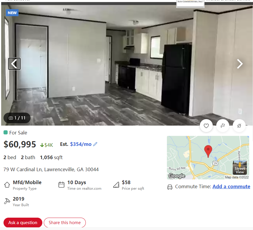>>530322667That does not include the lot rental.You have to pay rent on top of the mobile home payment.Mobile homes are also more lightly constructed and take even more regular maintenance to keep from deteriorating than a house, and depreciate in value like a vehicle rather than gain equity.
