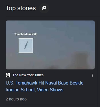 >>530326606>All Girls School hit by Tomahawk missileDoes israel use Tomahawk missiles? No? Which country is launching Tomahawk missiles at Iran right now?