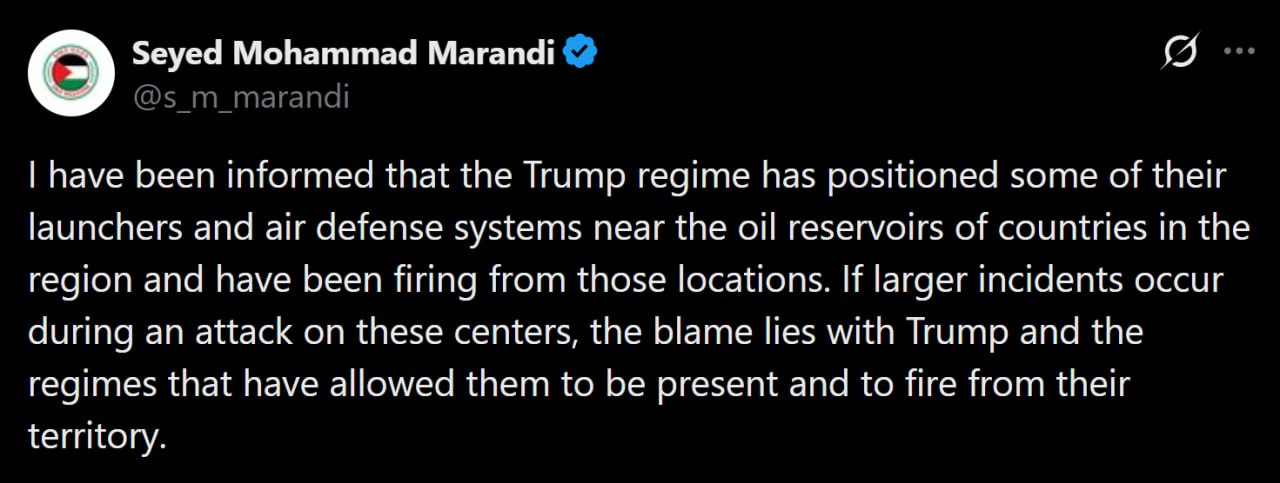 >>530329791>Both american and iranian strikes are down, there are many copes around this, but I believe they both exhausted their target lists.I dont think so, targets have been updated yesterday and today by Iran : Today :IRGC Aerospace Forces:>"From now on, we will not launch any missile with a warhead weighing less than a ton".Yesterday : >Iran is expanding its list of targets, going beyond military facilities and including American economic assets and strategic interests throughout the region.>It is reported that "Iran's target list has been radically updated", now it includes major American and Israeli investments, as well as vital interests in the region. This includes warehouses and terminals for food, medicines, and so on.And they published the launch of the 1 ton missiles