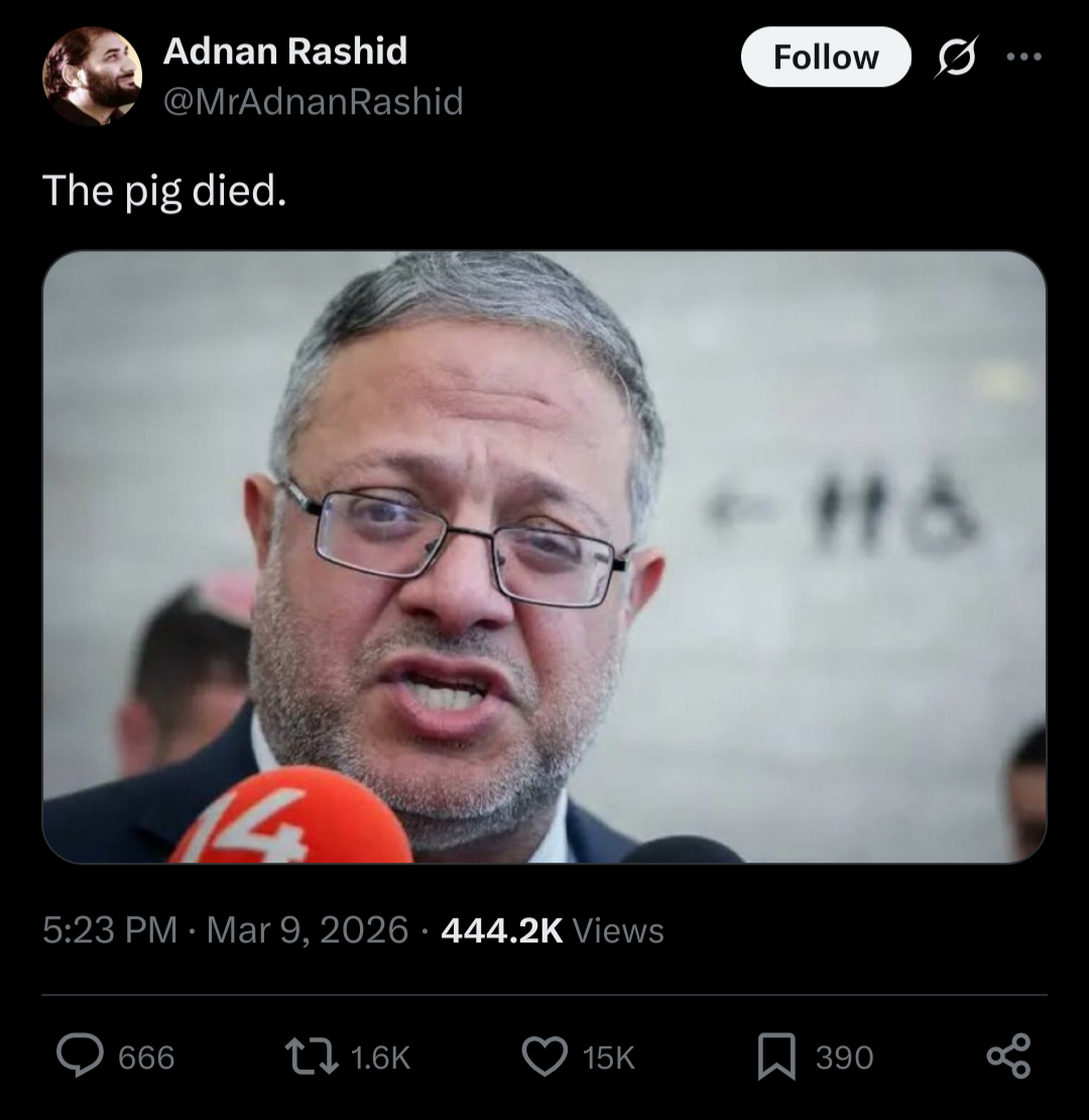 >>530333489I hope so fuck Ben Gvir he is such an evil pos