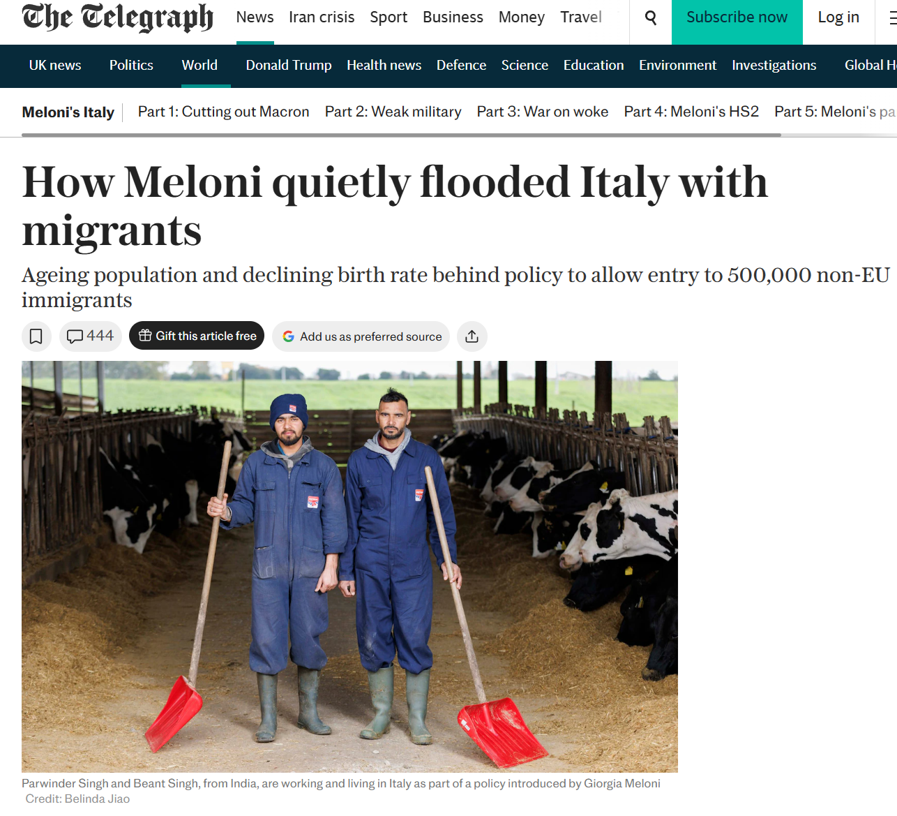 >Why? Because Italy’s demographic crisis that has led to labour shortages. “It’s quintessential Meloni,” said one expert, pointing to how she is very tough on unauthorised migrants but practical enough to realise Italy needs migrants if they come through legal channels.