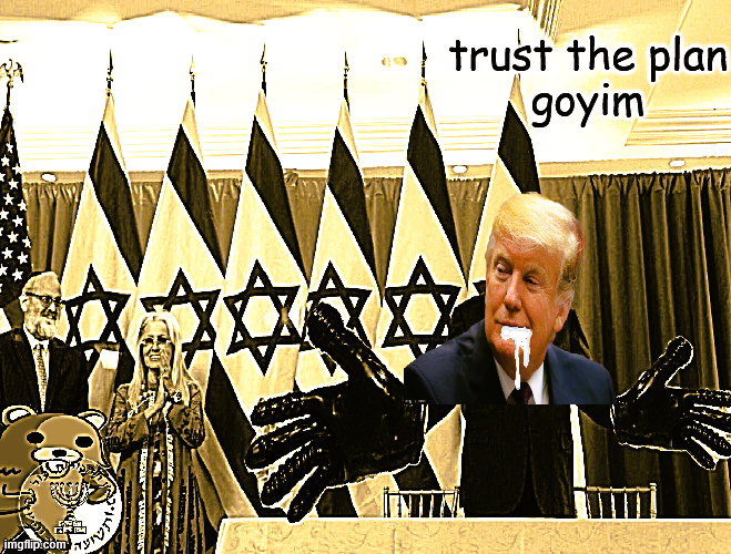 So how many days of hitting Iran increasingly harder in a 4 day special military operation are we on now? This compromised kid fucker will do anything the kikes tell him to now that Bibi has hinted that they really do have videotapes of him clapping underage cheeks. Oil will soar past $300USD per barrel, thousands of burgers will be slain by insurgents, the western economy will crash into a depression, Trump will drop dead of a fat-attack in disgrace. And after all that, as the sun sets on the west and rises over China, the kikes will shamelessly jump ship to the kikes and help them finish off Walmartica. They will also leak Trump's kiddie home videos just to destroy his legacy in death. Russia and Belarus will invite millions of muslims and africans with a promise of helping them force their way into the EU to rape the women and girls and slaughter the men and boys.