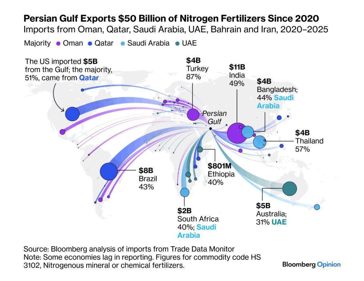 >>530343491The closure of the Hormuz is an essential part for Iran’s defense strategy, no nukes but with the closure of the straight it ensures a mass devastating effect for the whole planet. TSMC uses a special type of gas refined in Qatar, and they got only 10 days left in reserves, after that, no chips, no electronic, no war equipment manufacturing for the west. Also a large part of fertilizers : >Between 30 - 45% of urea (sulfur used in fertiliser production) production passes through the Strait of Hormuz, and this could cause a new shock in the fertilizer market, leading to rising food prices and a decline in living standards - BBG>As of early March 2026, the effective closure of the strait due to geopolitical conflict has led to a surge in urea prices (about 25% or roughly $70/ton).Which can cause famine.