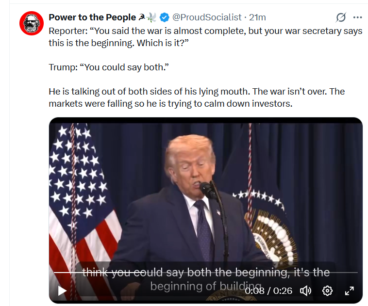 oil is cheaper than it was before the war started. trump is amazing at this.