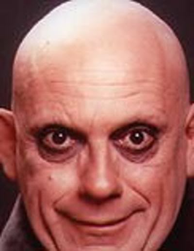 He probably wears fake eyebrows. I cant rememebr who it was, but awhile back someone's fake eyebrow fell off during some press event and they tried extremely hard to say it was shadows from the lighting.