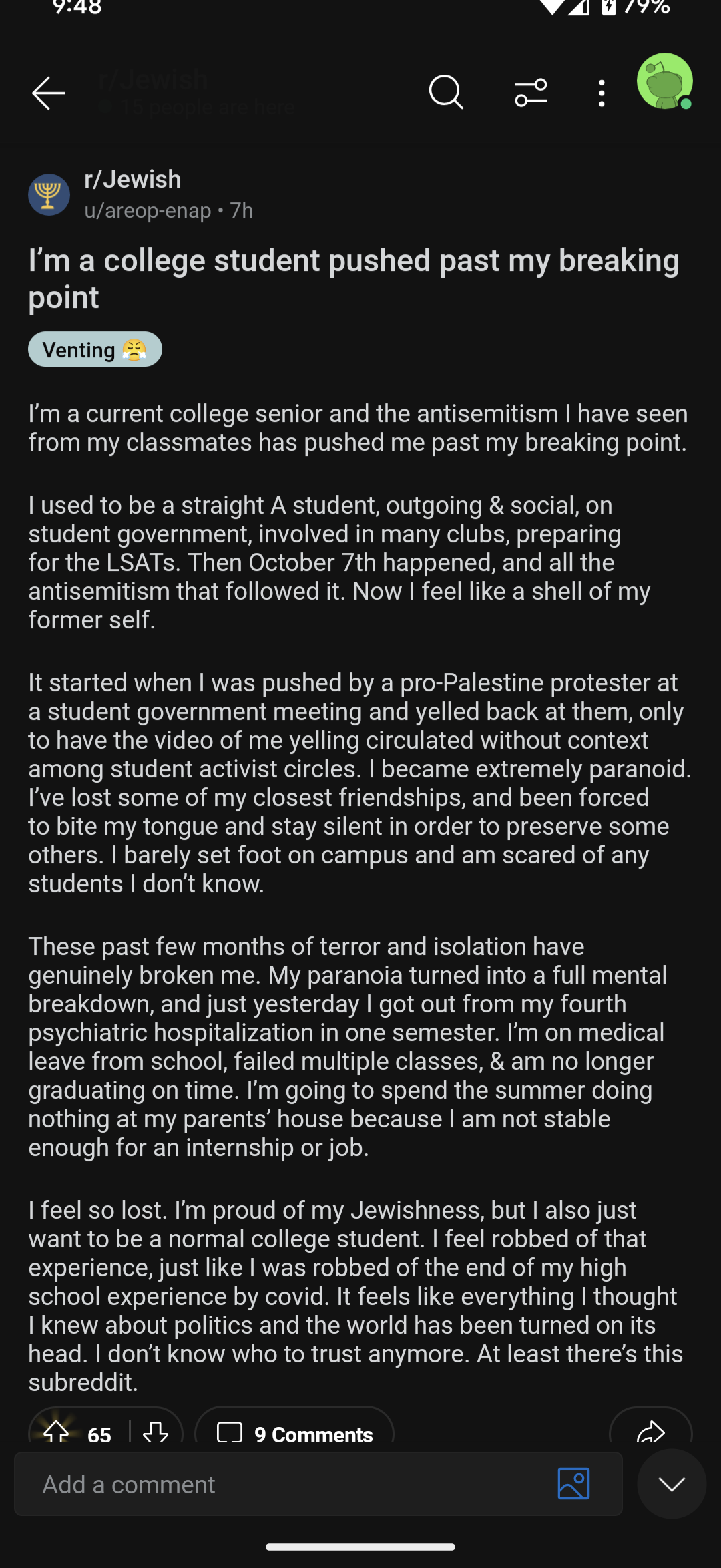 >>530343893R/Jewish is the best anti therapy ad ever. It helps no one. It's just a place you pay someone to agree with you.