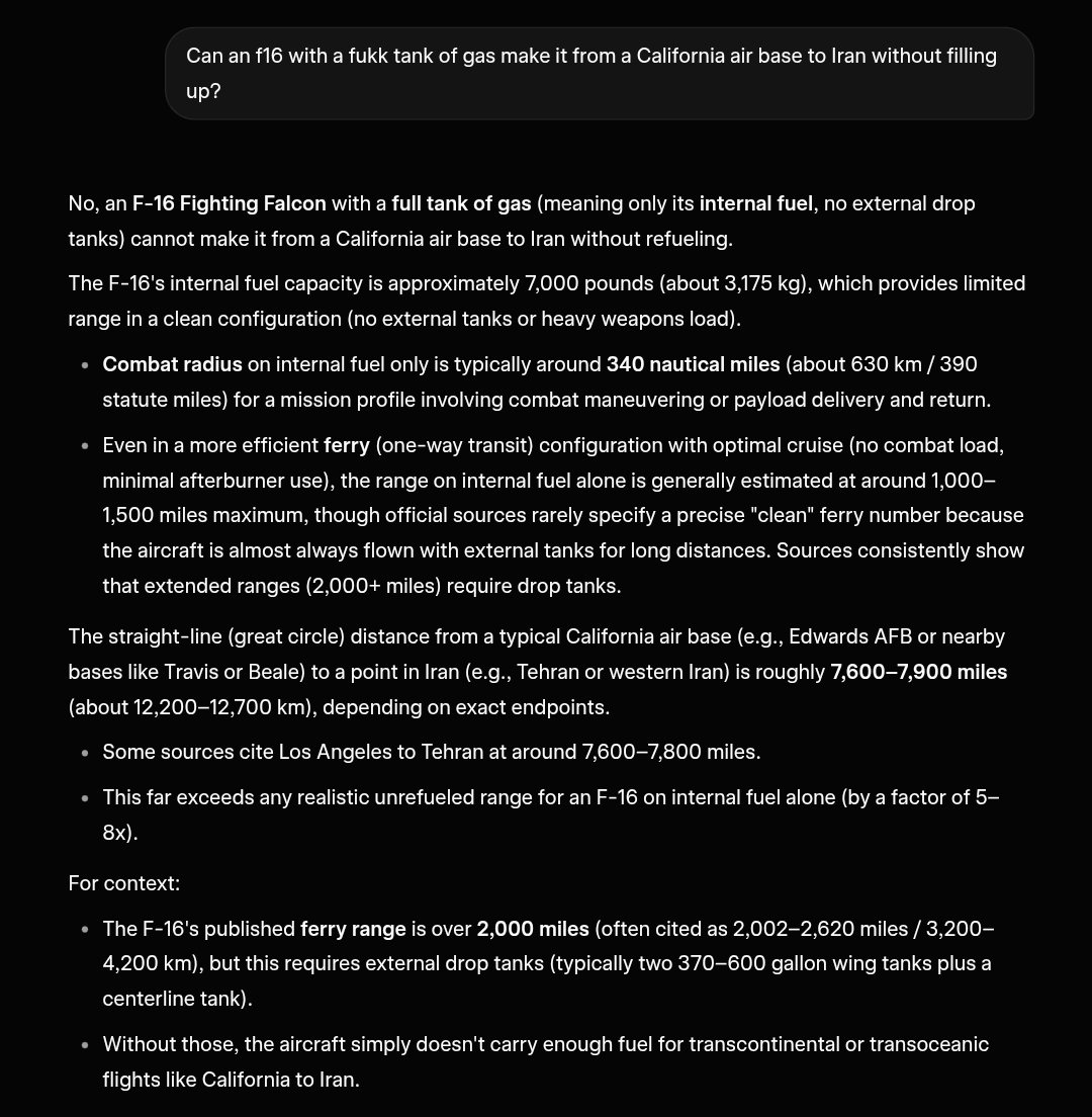 >Washington to Iran in a half-filled jetfighter with a range of <500kmsGok, is dis reel?