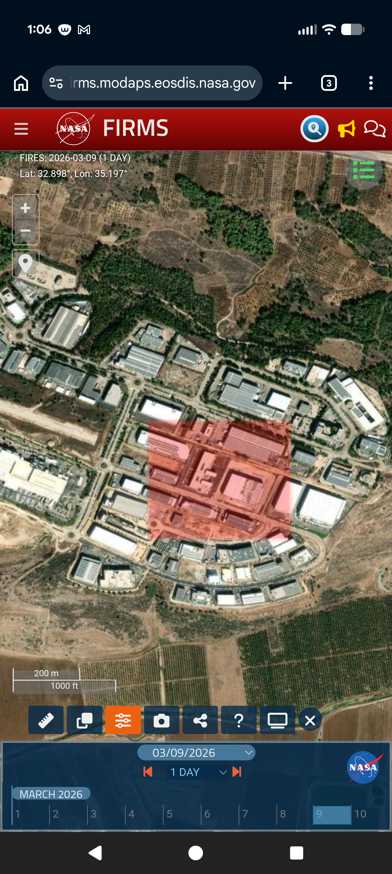 prove: a correlation between a fire showing up and a iranian missile laucnh and alerts