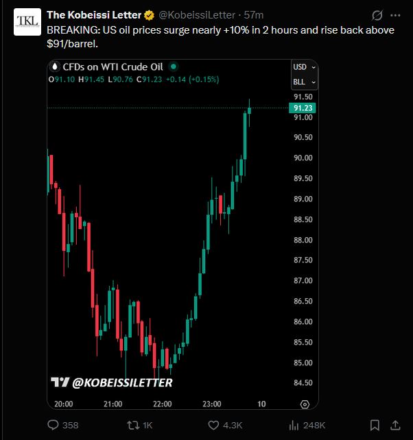 WTI crude is back down to $88, brent crude is at $92, materially nothing has changed but the markets don't operate in the real world, let alone the futures market