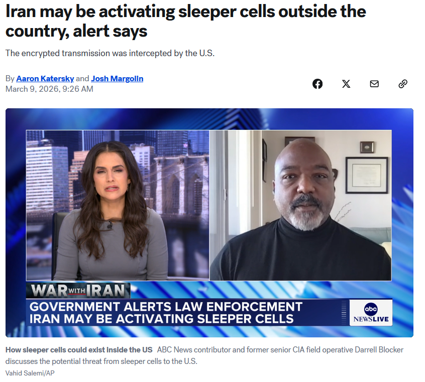 >>530353859The IRGC literally called out the fact that the majority of Americans oppose the war and said that he doesn't want any harm to become of ordinary US citizens because of that. Any "sleeper cell" bullshit that doesn't directly target the government/military is a kike false flag.