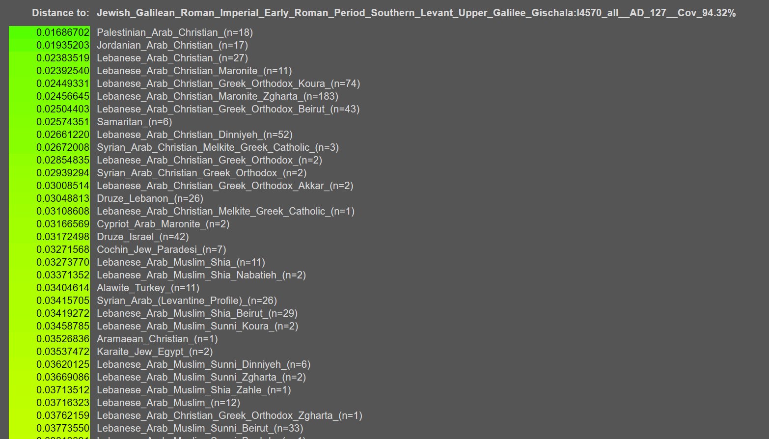 >>530360678yes depigmented, you have no idea how genetics work, you can be genetically a saudi and have blonde hair and blue eyes, it's completely irrelevant, as you can see by their results they plot with the modern levantine reference (yes 23andme clusters are based on modern populations), they're not european, they're genetically no different from the average brown skinned levantine, just cherrypicked depigmented outlierslevantines weren't white and jesus was not white