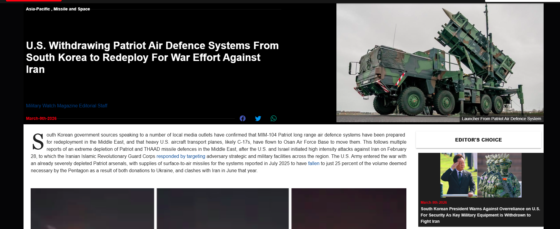 I don't think so. If he's smart he'll be conciliatory or stay silent and the worst Koreans seethe about the perfidious Americans. They mad right now because trump has fucked the stonks bull market (which was riding high because of ai and electronics components). They're double mad because the US started moving missiles away in December 2025. When the president was asked why he didn't do something about it he flat out said he had no power to prevent it (very unusual for an Asian politician to be so blunt instead of saving face) so the Koreans are having a long hard think about what 'friendship with America' means.Speaking of Asian-American friendship, Japan is irritated right now because a US army helicopter developed engine trouble and did an emergency landing in a baseball field where school kids were playing. The US base at Okinawa is constantly having fuckups with planes and helicopters, there is a crash or emergency landing every few months and the japs are getting sick of it,