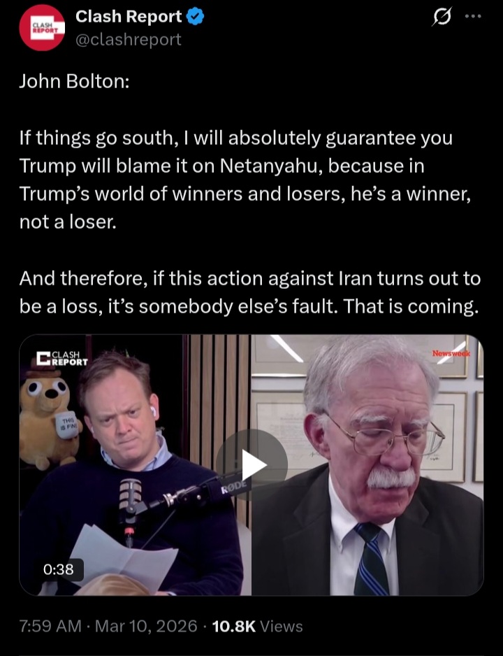 Before things go south, I will absolutely guarantee you Bolton will blame it on Trump, because in Bolton's world of good and bad, Netanyahu is good and orange man bad.