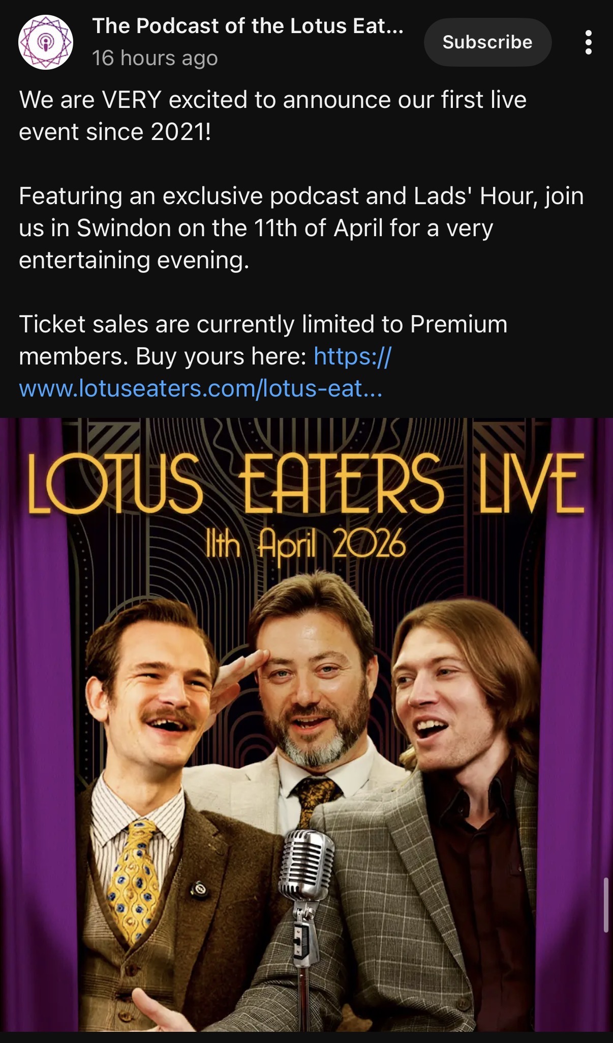Seeing The Lotus Eaters live lads! £35 a ticket