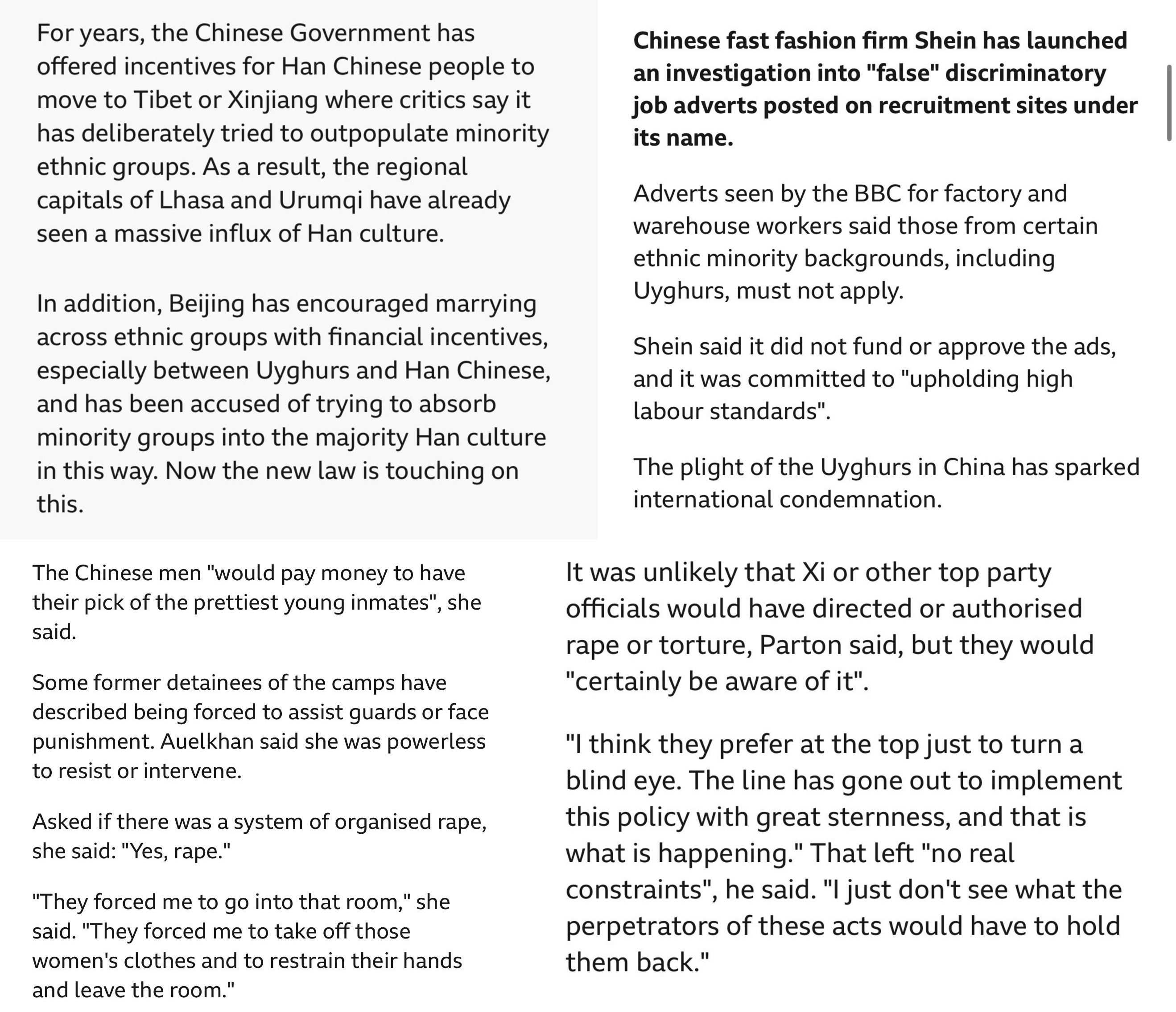 >>530364673https://www.bbc.co.uk/news/articles/c6271gxpdkzo>Why is China set to approve a new law promoting 'ethnic unity'?>Shocking. Imagine being made a minority in your own capital city.>Terrible stuff. Can you imagine seeing jobs advertised that specify that your own demographic cannot apply?>The situation in Xinjiang is awful. Imagine the government turning a blind eye to a gangs of sadistic, racially motivated rapists. Totally unthinkable here.