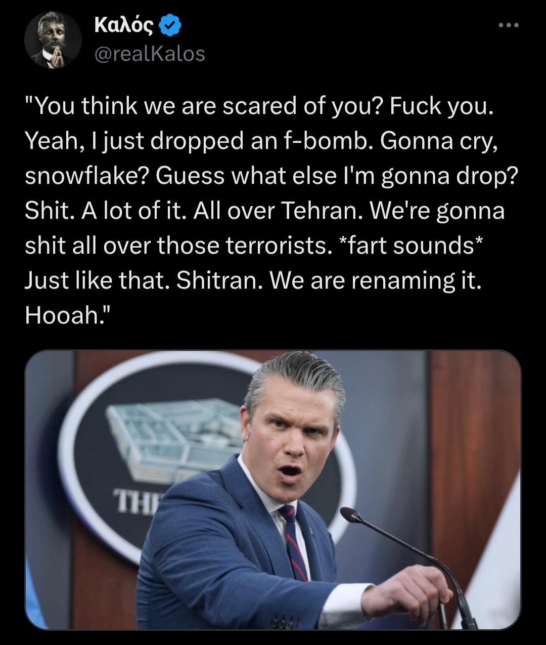 This is brill. Blowing up Iran should happen every day. Oh wait. It is! >Boohoo I’m #Winning