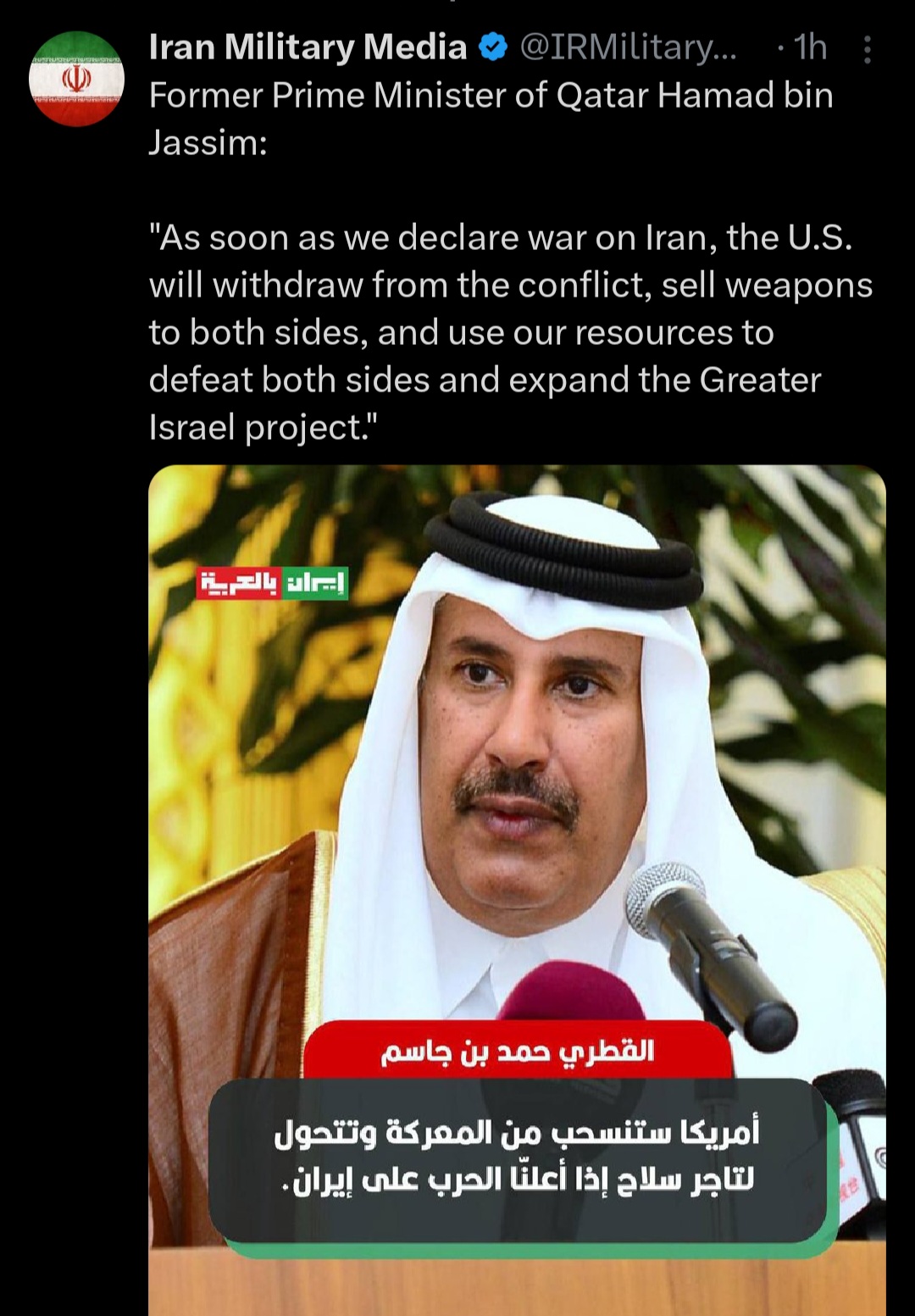 >>530365229Not really, they got the US to fight all their enemies, Israel is probably going to be the major beneficiary of this conflict and America the major loser. Iran is definetly going to be weaker after this conflict is done and maybe even divided along ethnic lines in the best case scenario for Israel