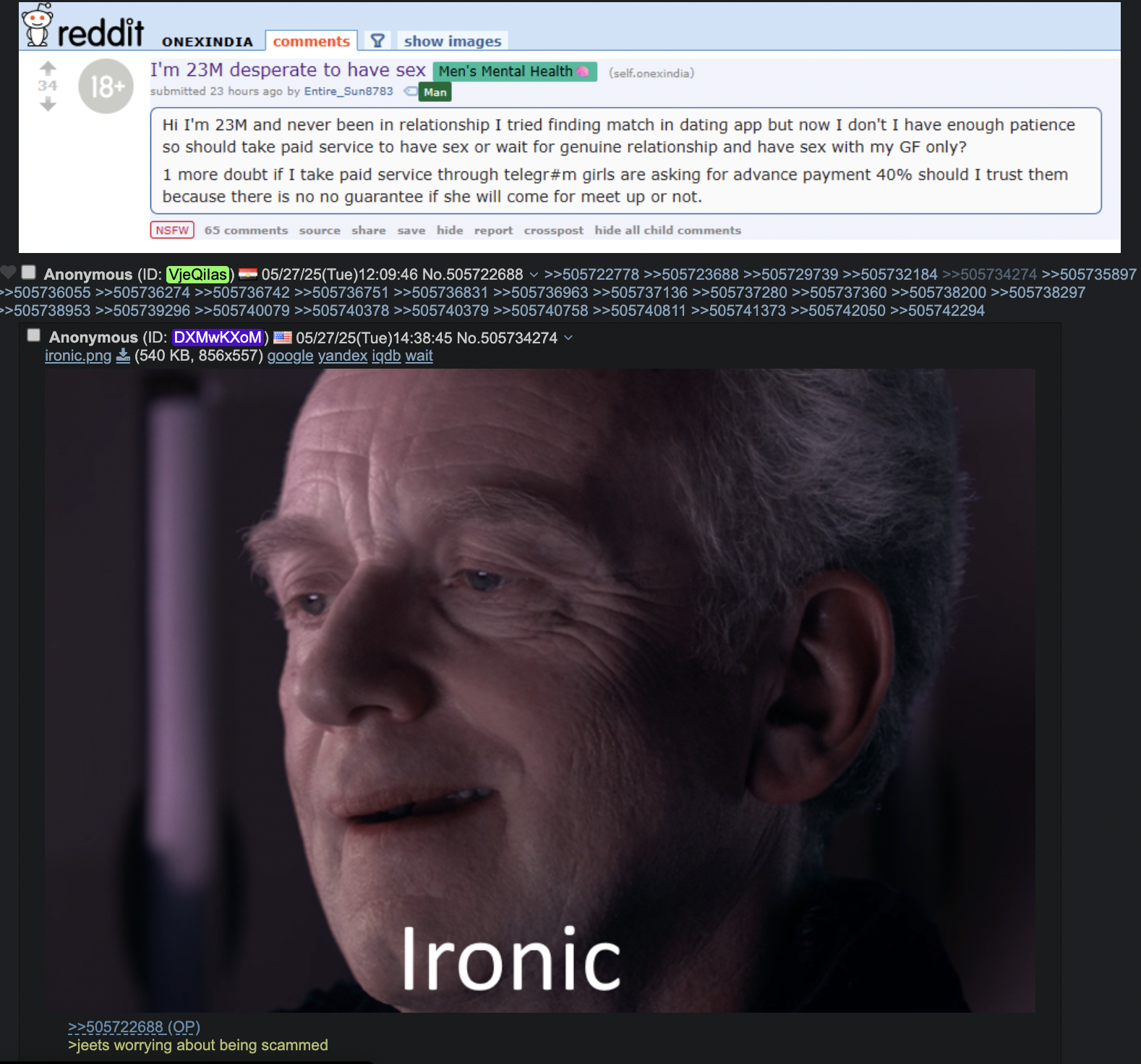 >>530365146The single thing that destroyed the internet isn't the mass surveillance state or the CIA, it's Jeets.>They shat up the whole world's internet and phones.Literally spammed all telephones to the point nobody answers the phone anymore. SEASONED