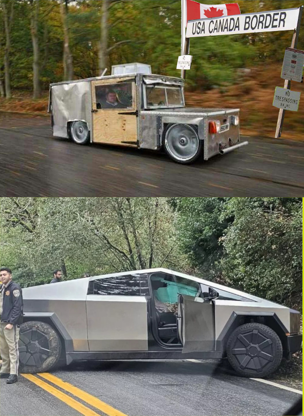 just have your meme car drive itself to the border and they'll stop looking for you