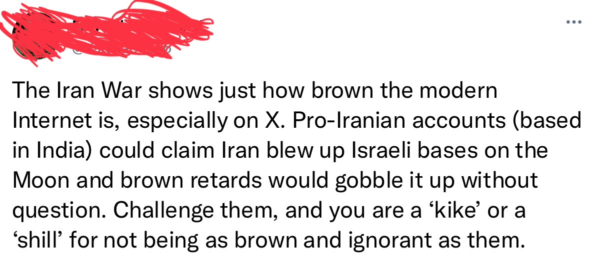 This board is unusable due to the mass amount of brownoids fully convinced Iran has “won” (somehow). FYI, saying that Iran very clearly lost isn’t a endorsement of MIGA and the kikes.
