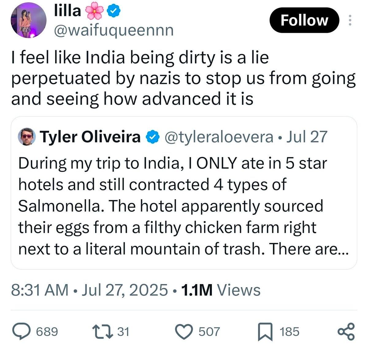 >hate on jeets and post literally shitty ai slop laughing at them every day>jimmies get rustled when jeets start talking shit backwhy are americans so retarded? Is this not what you wanted? Is this not what you expected? Wtf do you want? You got manipulated to destroy your relations with India so the russia India relationship improves. Literal tools, they use you and laugh at you. How embarassing.