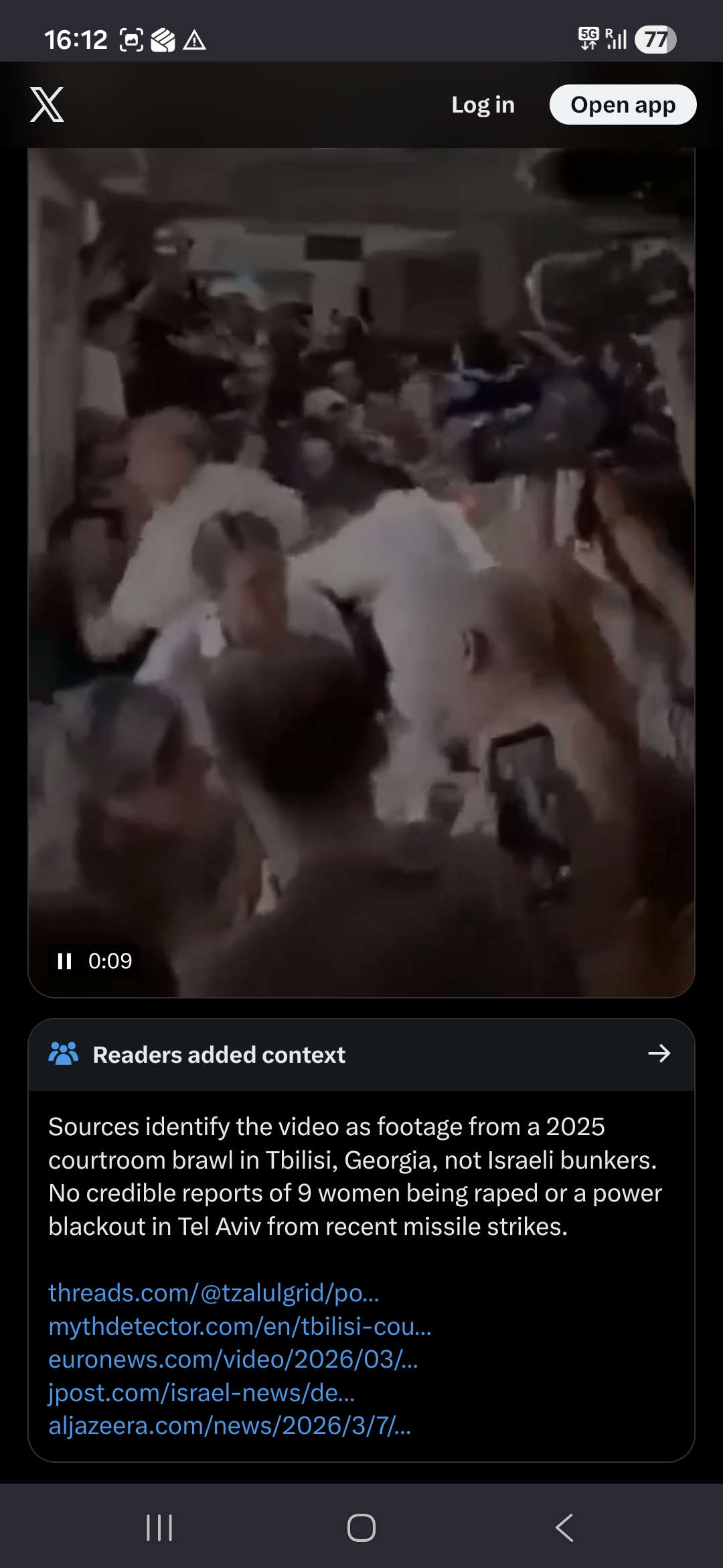 >>530380249>Sources identify the video as footage from a 2025 courtroom brawl in Tbilisi, Georgia, not Israeli bunkers. No credible reports of 9 women being raped or a power blackout in Tel Aviv from recent missile strikes.fuck you're stupid