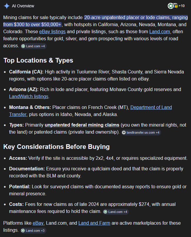 I'm looking at buying a mining claim. It's a 99 year lease, no taxes, 40 acres on a creek, $5k. Might even do some gold panning.