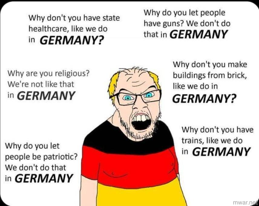 >>530387970>>530388054>>530388196>>530388436>>530388640There needs to be a complete ban on German imports until they get their shit together. Germany is a major trading partner of all of America's enemies, as well as a major supporter of foreign and domestic terrorism. It is an unreliable ally due to diplomatic incompetence both feigned and genuine. Its subjects are not even allowed to own most of America's best exports, and when so, only after extremely high tariffs. Furthermore, most German products are of poor quality and have a very high total cost of ownership. Let them try isolationism for a while and see how they like it.